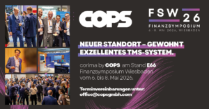 corima by COPS auf dem 37. Finanzsymposium in Wiesbaden vom 06. – 08. Mai 2026 The 37th Finance Symposium will take place this year for the first time at the RheinMain CongressCenter in Wiesbaden. The COPS exhibition team will be at booth no. E66. In Studio 2.2 (b), with the...